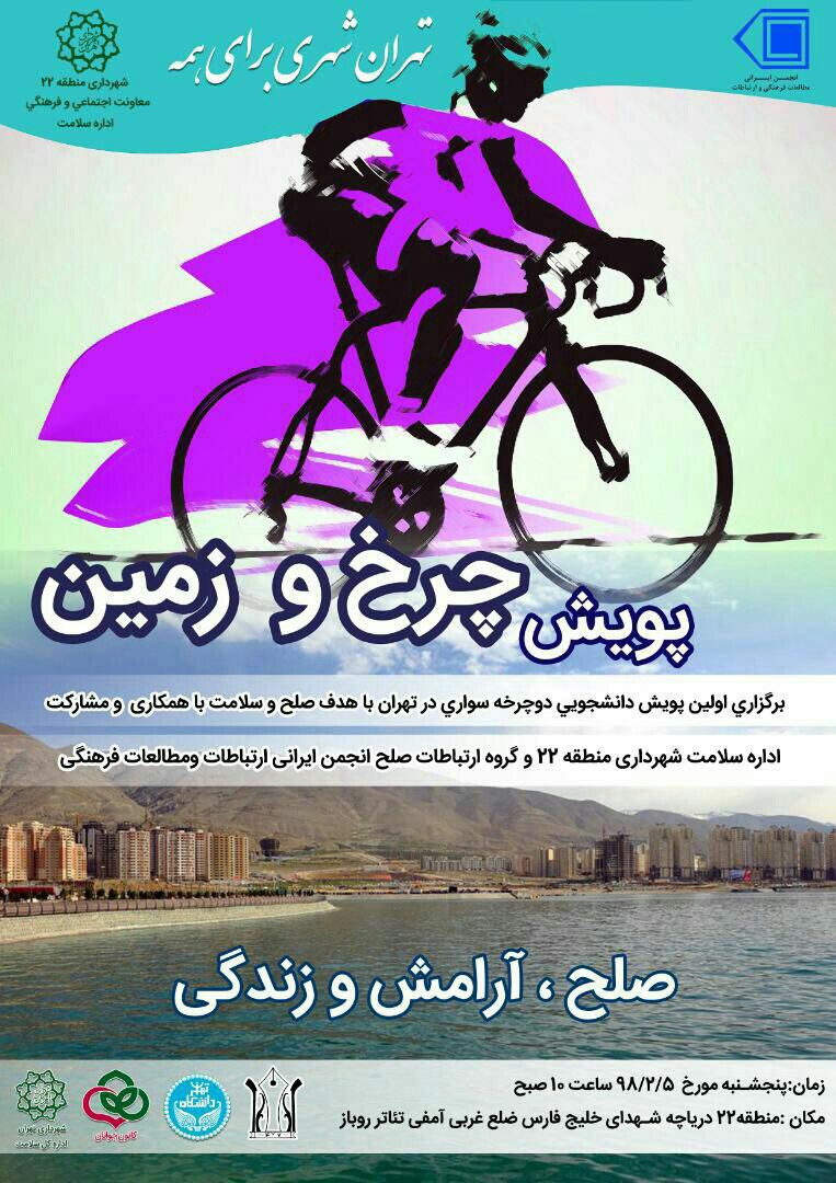 گروه ارتباطات صلح انجمن ایرانی مطالعات فرهنگی و ارتباطات با همکاری اداره سلامت شهرداری منطقه 22 تهران برگزار میکند: