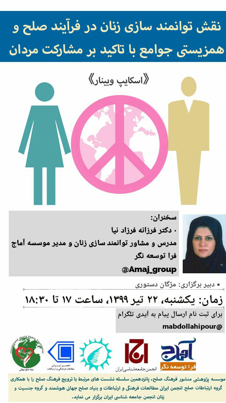 وبینار نقش توانمندسازی زنان در فرآیند صلح و همزیستی جوامع با تاکید بر مشارکت مردان