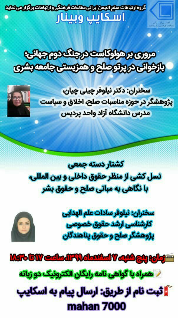 🔹سخنران: نیلوفر سادات علمالهدایی، کارشناسی ارشد حقوق خصوصی و پژوهشگر صلح و حقوق پناهندگان