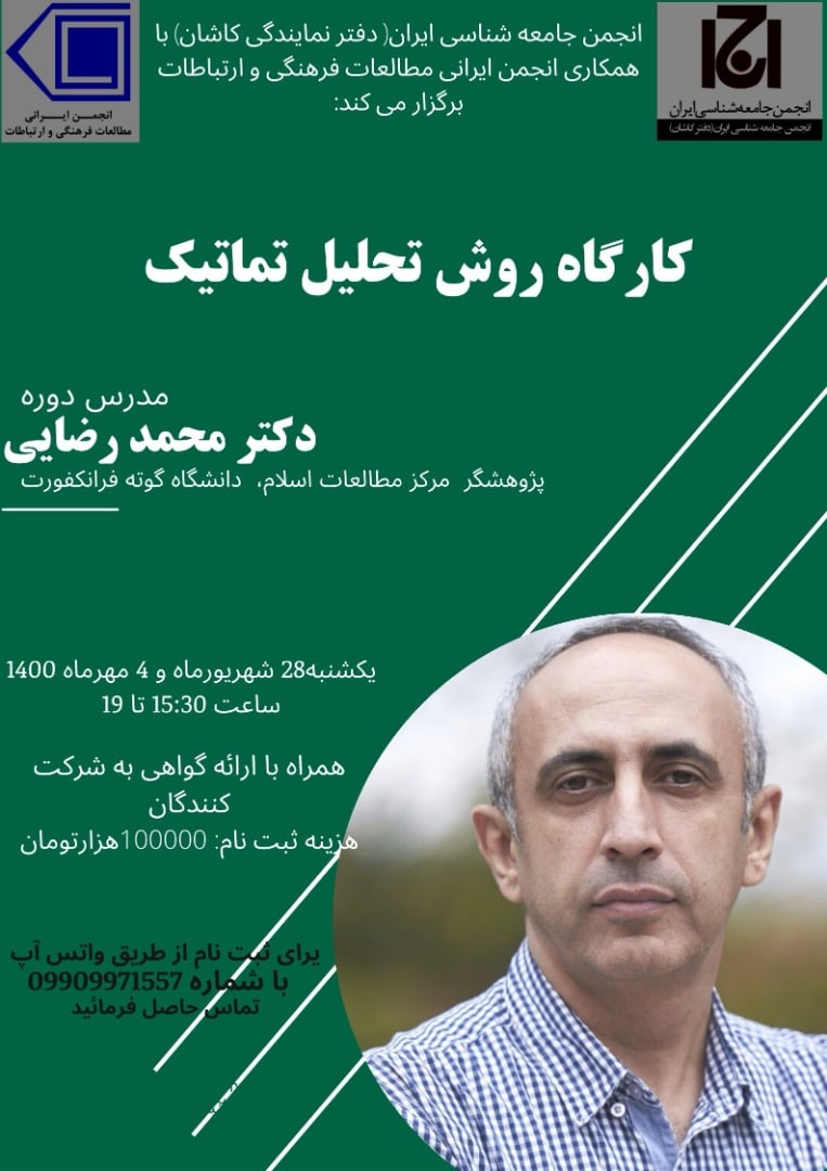 انجمن جامعهشناسی ایران (دفتر نمایندگی کاشان) با همکاری انجمن ایرانی مطالعات فرهنگی و ارتباطات برگزار میکند: