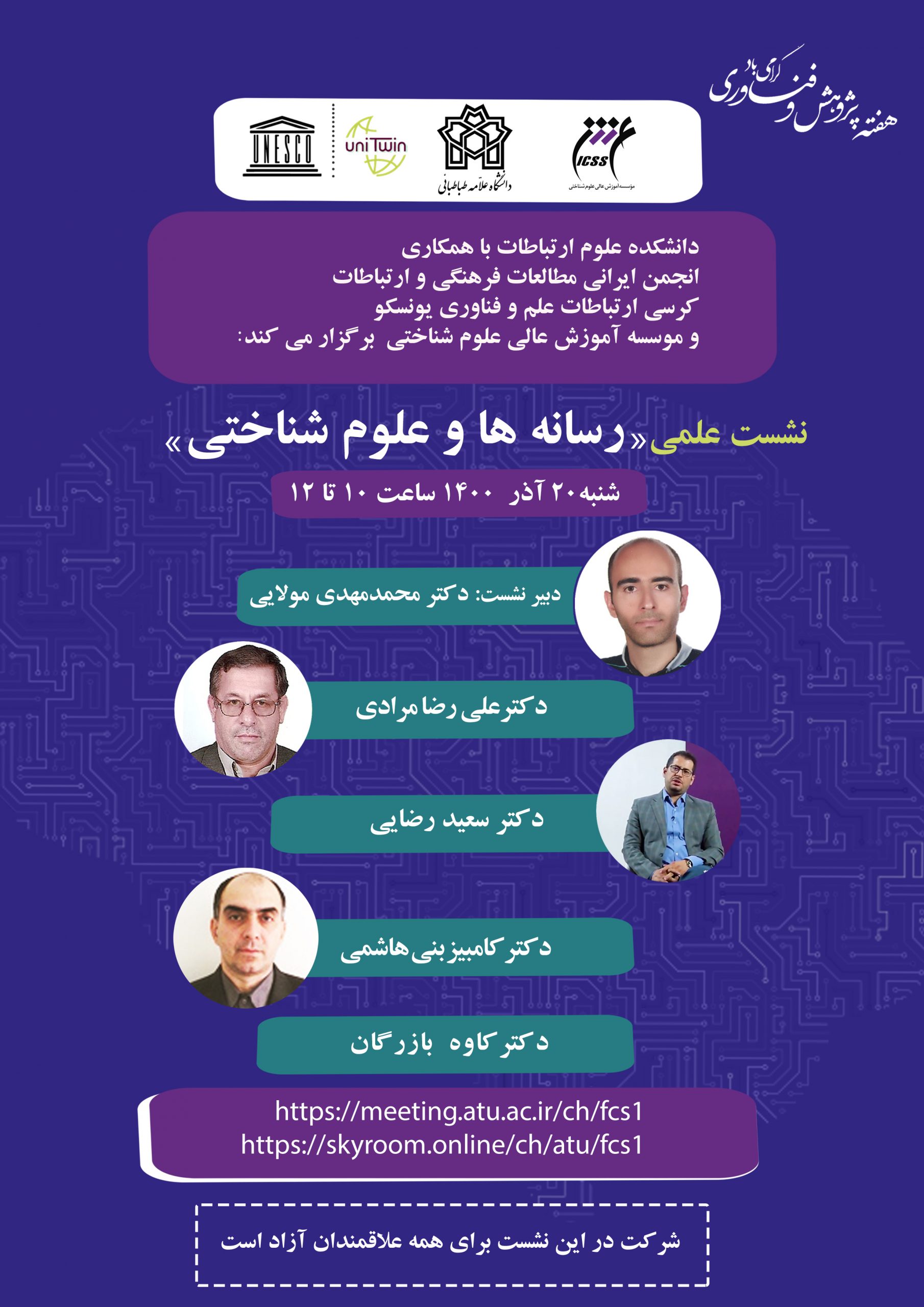 دانشکده علوم ارتباطات دانشگاه علامه طباطبایی با همکاری انجمن ایرانی مطالعات فرهنگی و ارتباطات، کرسی ارتباطات علم و فناوری یونسکو و موسسه آموزش عالی علوم شناختی برگزار میکند: