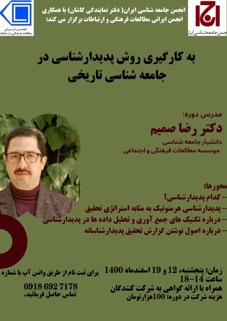 انجمن جامعهشناسی ایران (دفتر نمایندگی کاشان) با همکاری انجمن ایرانی مطالعات فرهنگی و ارتباطات برگزار میکند: