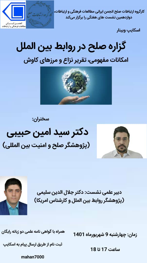 گروه ارتباطات صلح انجمن ایرانی مطالعات فرهنگی و ارتباطات دوازدهمین نشست هفتگی را برگزار میکند.