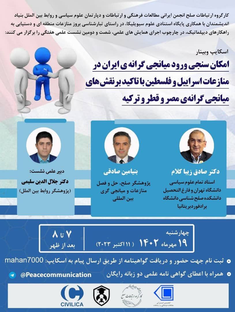 وبینار «امکانسنجی ورود میانجیگرانه ایران در منازعات اسراییل و فلسطین با تاکید بر نقشهای میانجیگرانه مصر و قطر و ترکیه»
