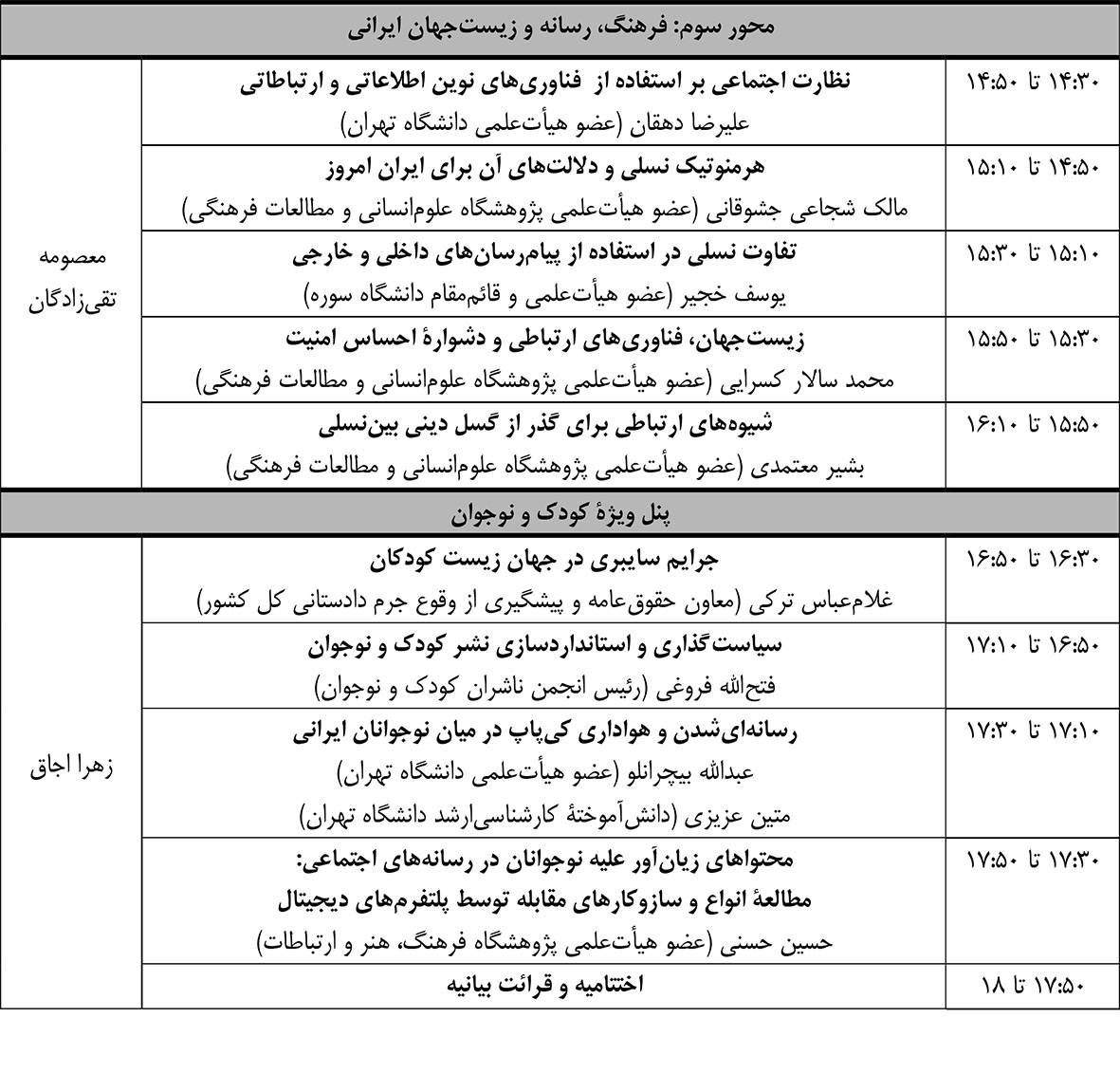 برنامه این همایش به شرح زیر اعلام شده است: