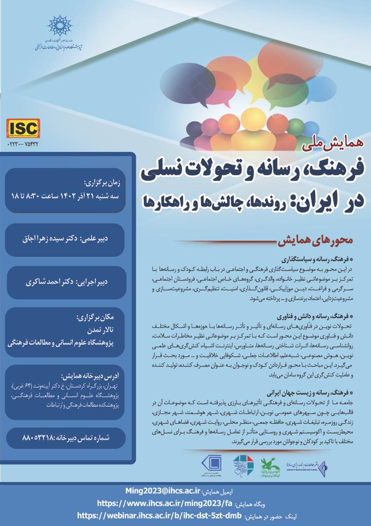 همزمان با هفته پژوهش روز سهشنبه ۲۱ آذر ۱۴۰۲، همایش ملی «فرهنگ، رسانهها و تحولات نسلی در ایران: روندها، چالشها و راهکارها» در پژوهشگاه علوم انسانی و مطالعات فرهنگی برگزار خواهد شد. موضوع اصلی همایش، بررسی تأثیر و تأثر تحولات رسانهها و دگرگونیهای نسلی با تمرکز ویژه بر مخاطب کودک است.