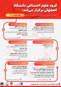 گروه علوم اجتماعی دانشکده ادبیات و علوم انسانی دانشگاه اصفهان انجمن ایرانی مطالعات فرهنگی و ارتباطات(دفتر اصفهان) برای هفته پژوهش 1403 برگزار میکند: