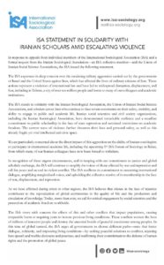 بیانیه همبستگی انجمن بینالمللی جامعهشناسی با پژوهشگران و جامعهشناسان ایرانی در بحبوحه تشدید خشونتها