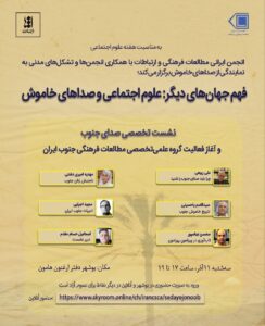 دفتر بوشهرِ انجمن_ایرانی_مطالعات_فرهنگی_و_ارتباطات در این نشست، استعارهی «صدای جنوب» را از منظر سیاست تفاوت با ارائه مهدیه امیری دشتی، تاریخ از پایین با ارائه سیدقاسم یاحسینی، ادبیات دیگری با خوانش پسااستعمارگرایانه با ارائه مجید اجرایی و جامعه پیرامونی با ارائه محسن عباسپور بررسی میکند. اسماعیل حساممقدم از کلیت گفتمان فرهنگ جنوب ایران میگوید و علی ربیعی با طرح پرسش «چرا باید صدای جنوب را شنید؟» آغاز فعالیت گروه علمیـتخصصی «مطالعات فرهنگی جنوب ایران» در انجمن را اعلام خواهند کرد.