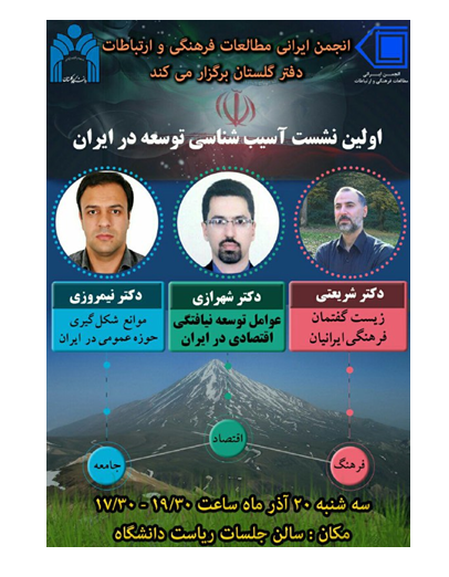 زمان: سه شنبه 20 آذر 97. ساعت 17:30 مکان : دانشگاه گلستان، سالن جلسات حوزه ریاست دانشگاه