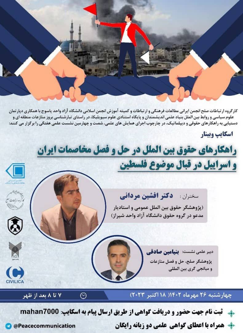 وبینار «راهکارهای حقوق بینالملل در حل و فصل مخاصمات ایران و اسراییل در قبال موضوع فلسطین»