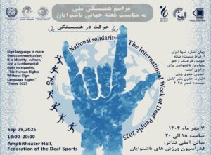 به مناسبت گرامیداشت هفته جهانی ناشنوایان، فدراسیون ورزشهای ناشنوایان ایران و انجمن ایرانی مطالعات فرهنگی و ارتباطات، مراسمی با عنوان «حرکت در همبستگی» برگزار میکنند.